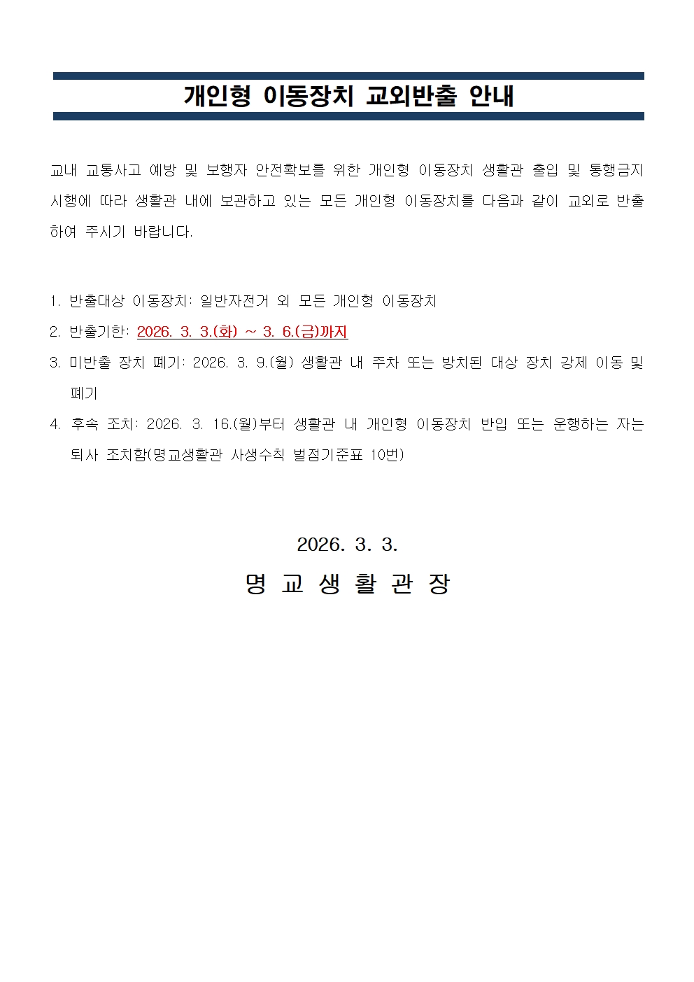 개인형 이동장치 교외 반출 안내